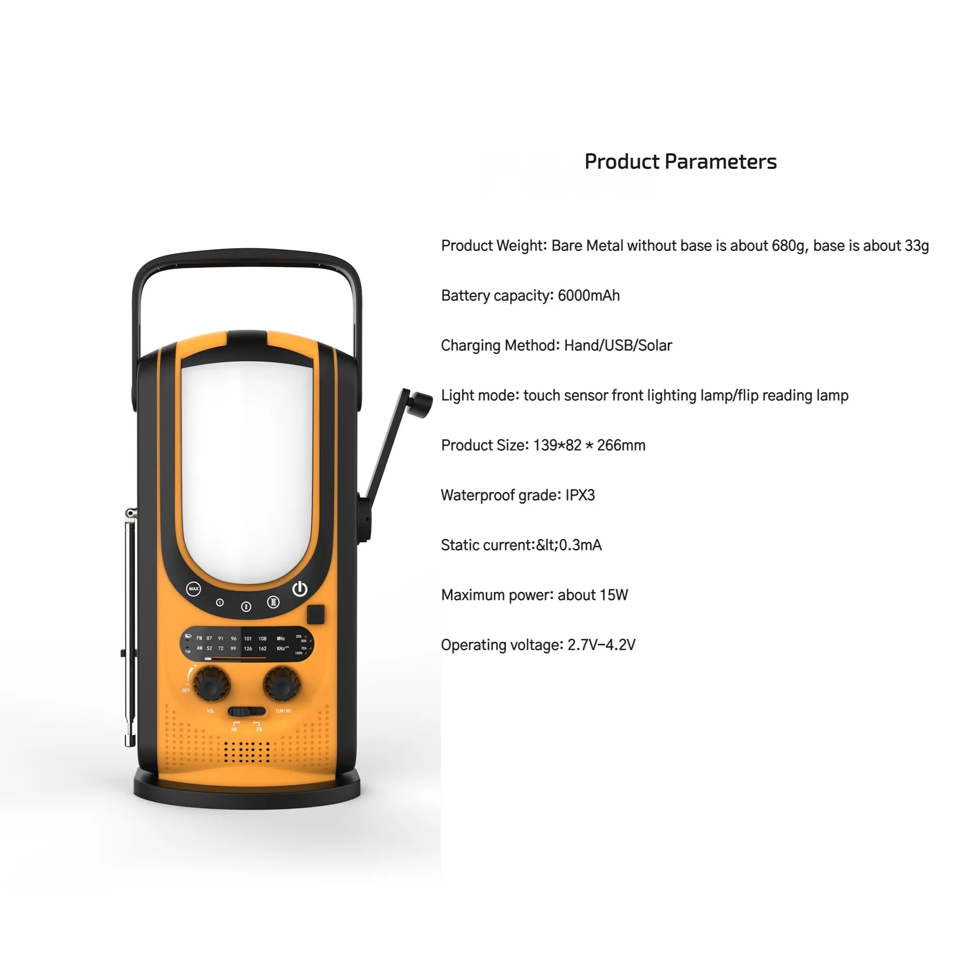 Md-099 Vészhelyzeti Multifunkcionális Rádió Hordozható, Kézzel Hajtott Napenergia-Töltés Sos Riasztás Érzékelő Kagylóolvasási Lámpa