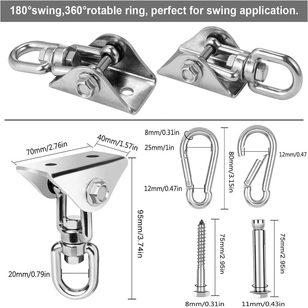 Nagy Teherbírású Akasztók Horgok, Rozsdamentes Acél 180 ° -Os Forgó Függőágy -Horgok Csavarokkal 1000 Font Kapacitás Az Üléses Trapéz Jógahoz, Tornaterem