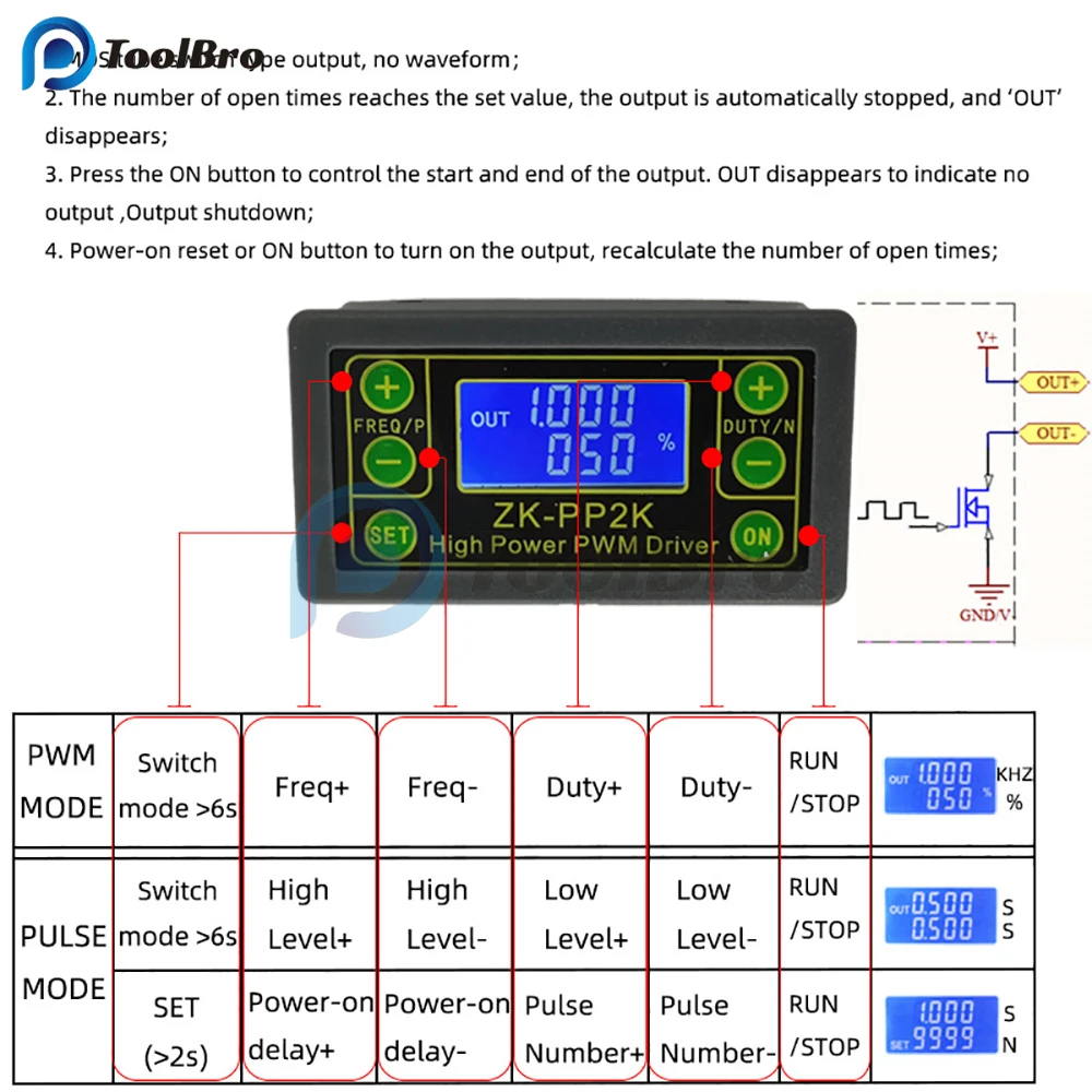 Nagy Teljesítményű Pwm Dc Motorsebesség -Vezérlő Állítható Mágnesszelep Impulzusfrekvencia -Üzemi Ciklus Timmer Vezérlő Kapcsoló