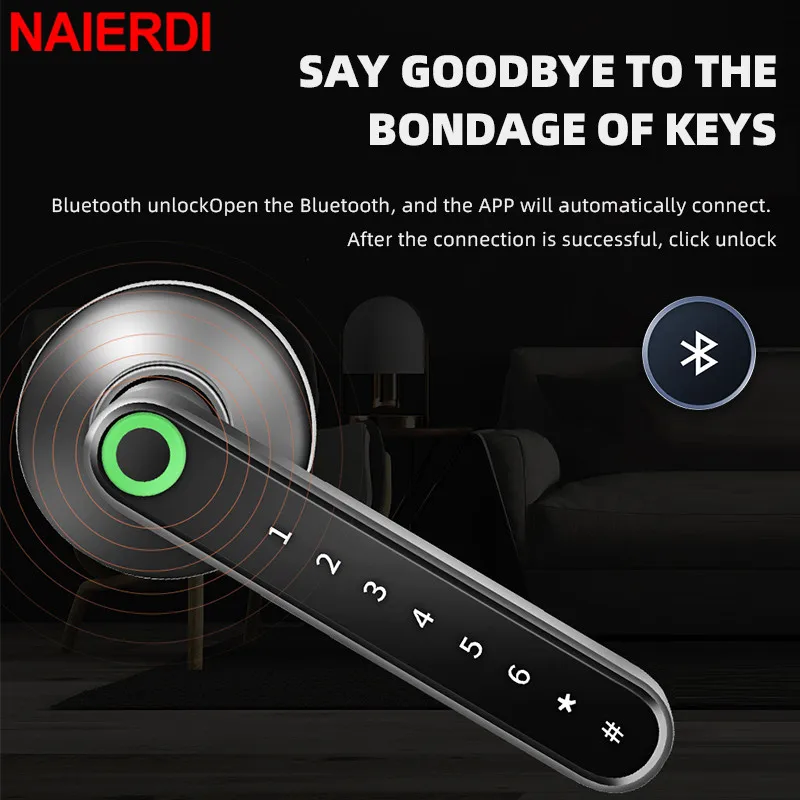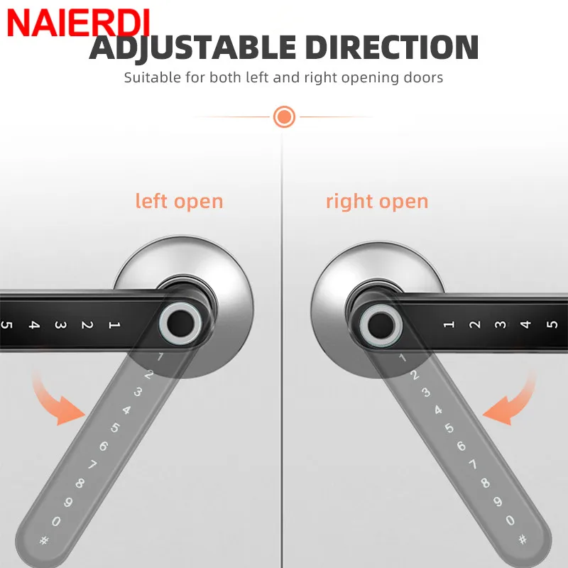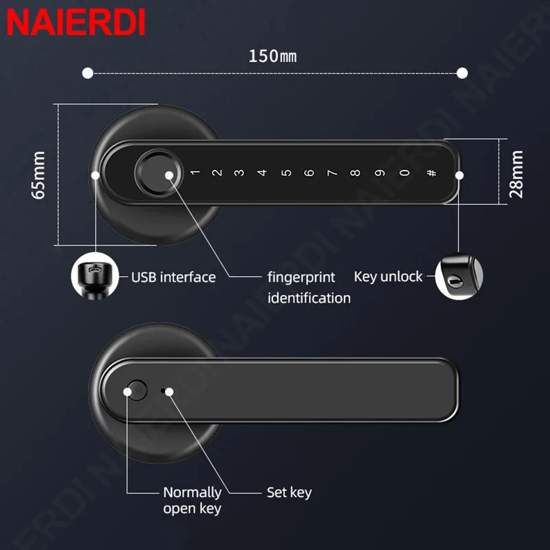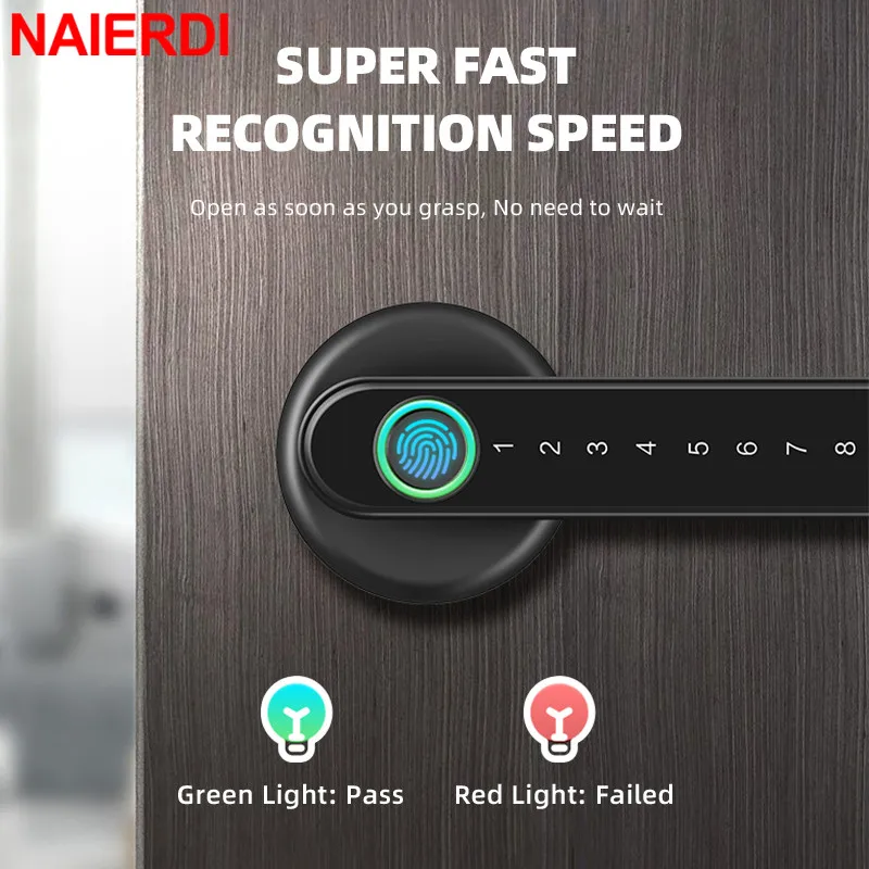 Naiierdi Fekete Biometrikus Biztonsági Ajtó Zár Intelligens Ujjlenyomat -Zárak Elektronikus Digitális Kulcs Nélküli Bejárati Ajtógombok Hardver