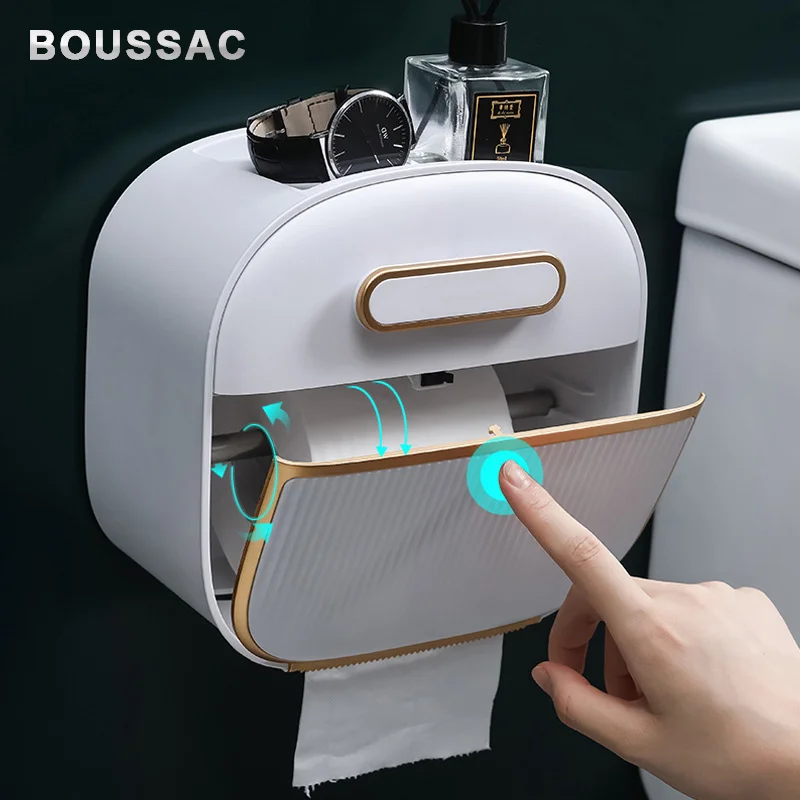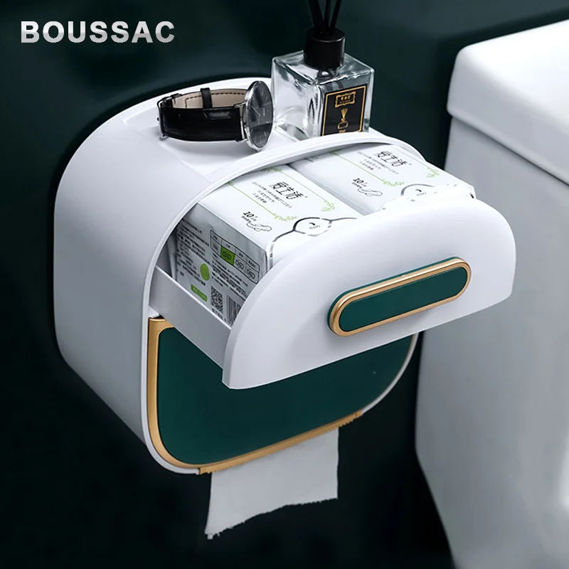 Négyzet Alakú Wc -Papír Tekercs Tartó Tároló Fürdőszoba Kiegészítő Fali Polc Szervező Szöveti Adagoló