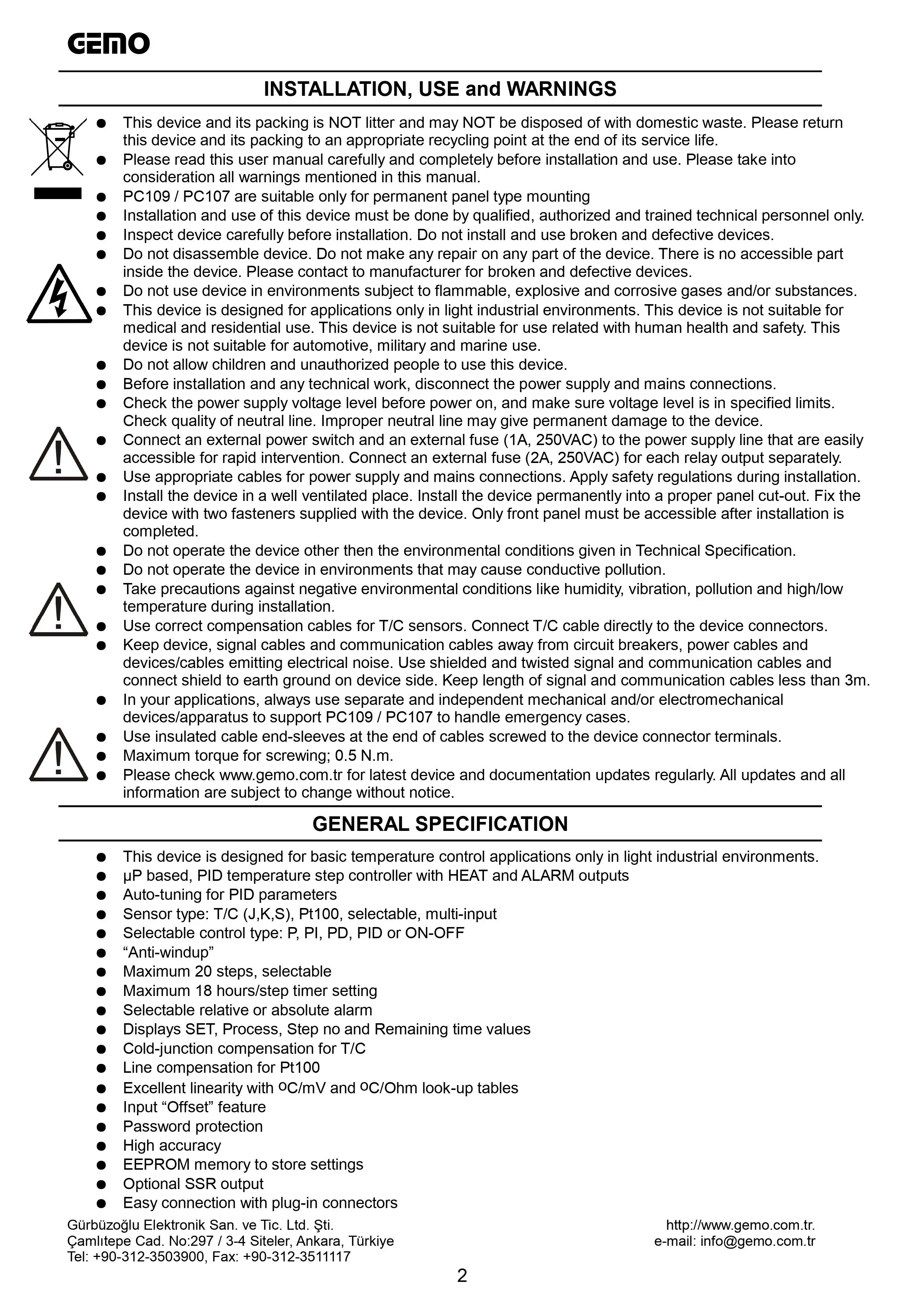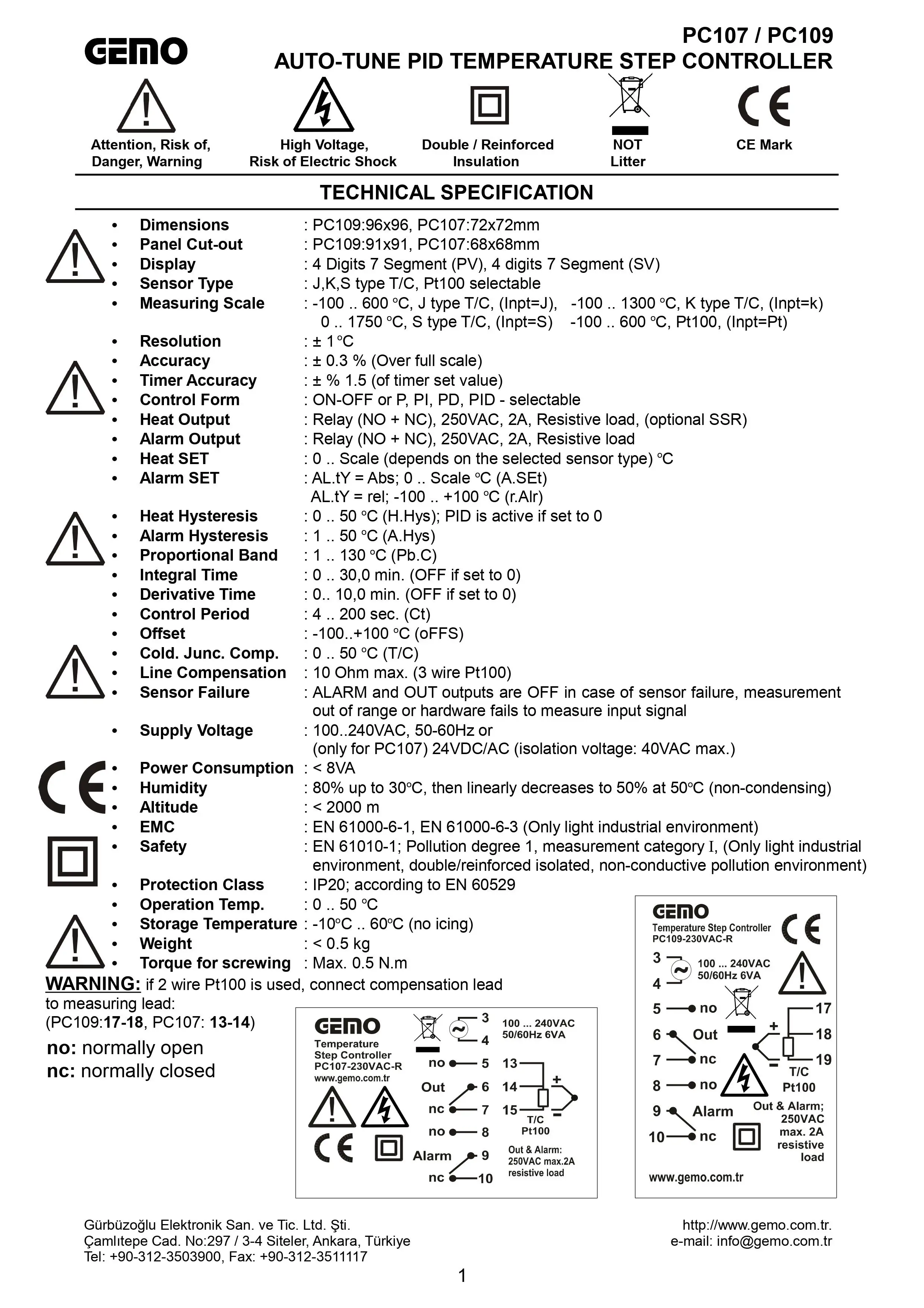 Pc107-230Vac-S Gemo Vezérlő Kimenet: Ssr Auto-Tune Pid Hőmérséklet-Vezérlő 72 Mm X Elülső Méret