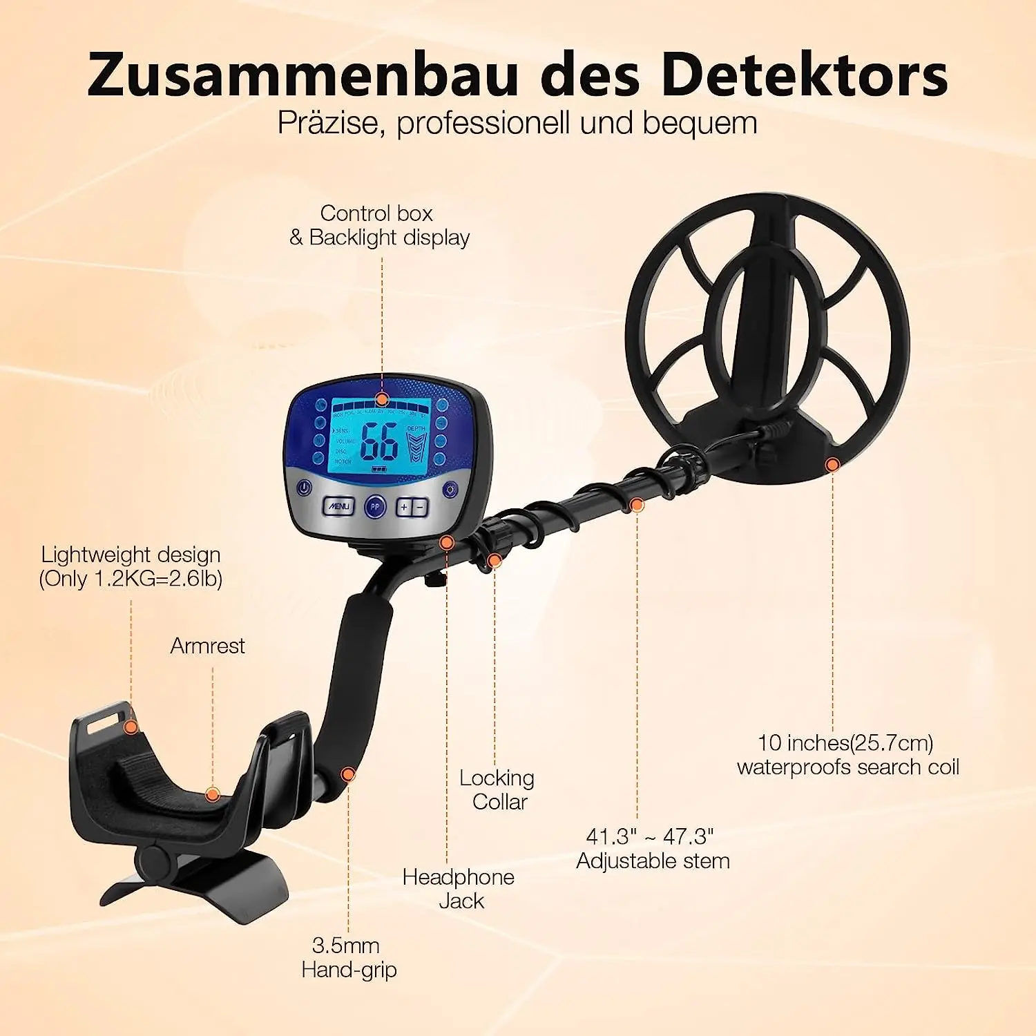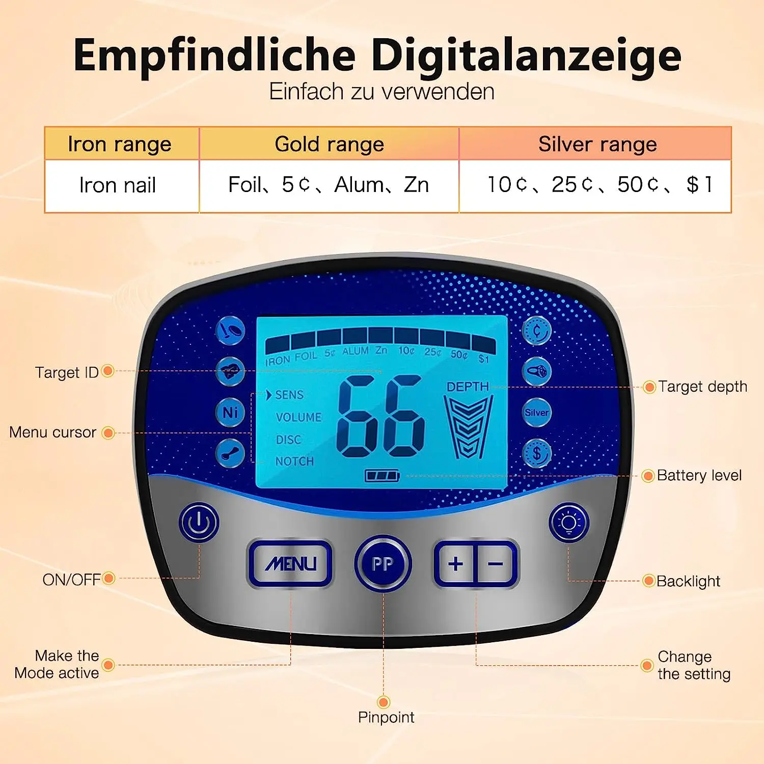 Professzionális Aranyérzékelő A Kincsvadászathoz, 10 “Keresési Tekercs Ip68 Vízálló, Nagy Pontosságú Fémdetektor T11 Lcd -Vel
