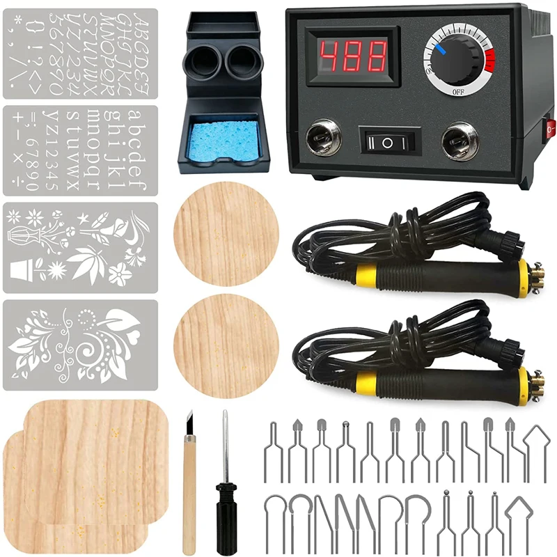 Pyrográfia Fa Égő Készlet Szerszám Kettős Toll 60W Frissített Állítható Pyrography Machine