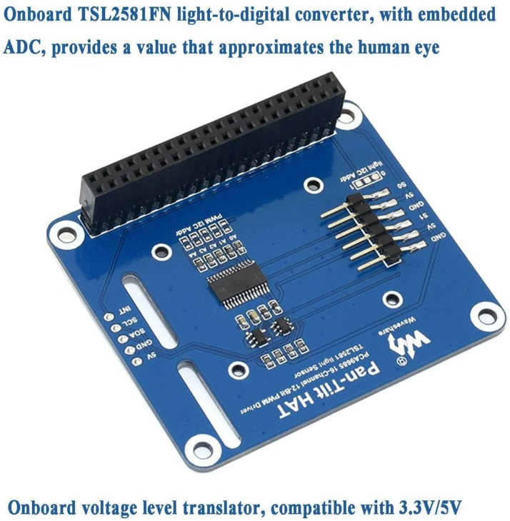 Raspberry Pi 4B Szervomotor-Vezérlő Pwm Kit, 2-Dof Pan-Tilt Hat Az Rpi Fényintenzitás Sense Fényképezőgép Mozgása I2C, Pca9685 Chip