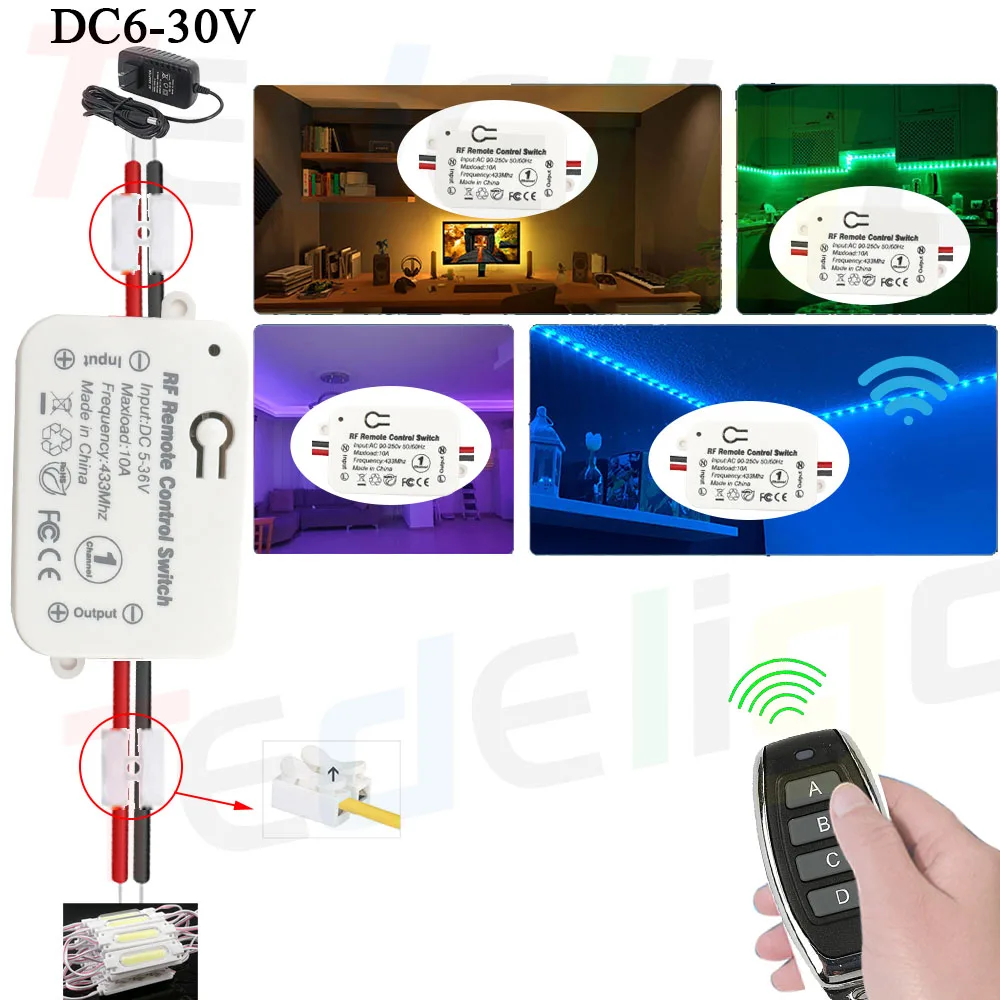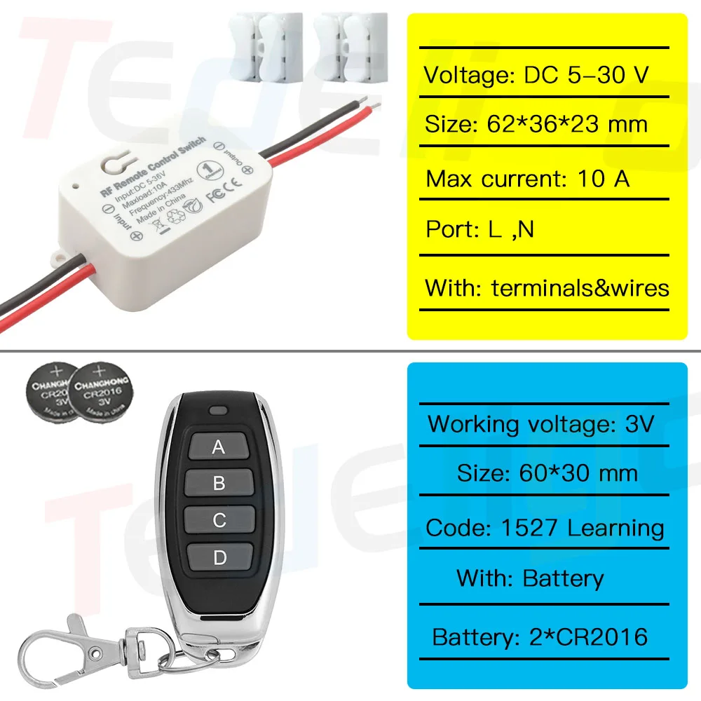 Rf 433Mhz Távirányító Kapcsoló Dc 6V 12V 24V 30V 10A Vezeték Nélküli Vezérlő Autó/Motorkerékpár Led Elektromos Ajtóhoz