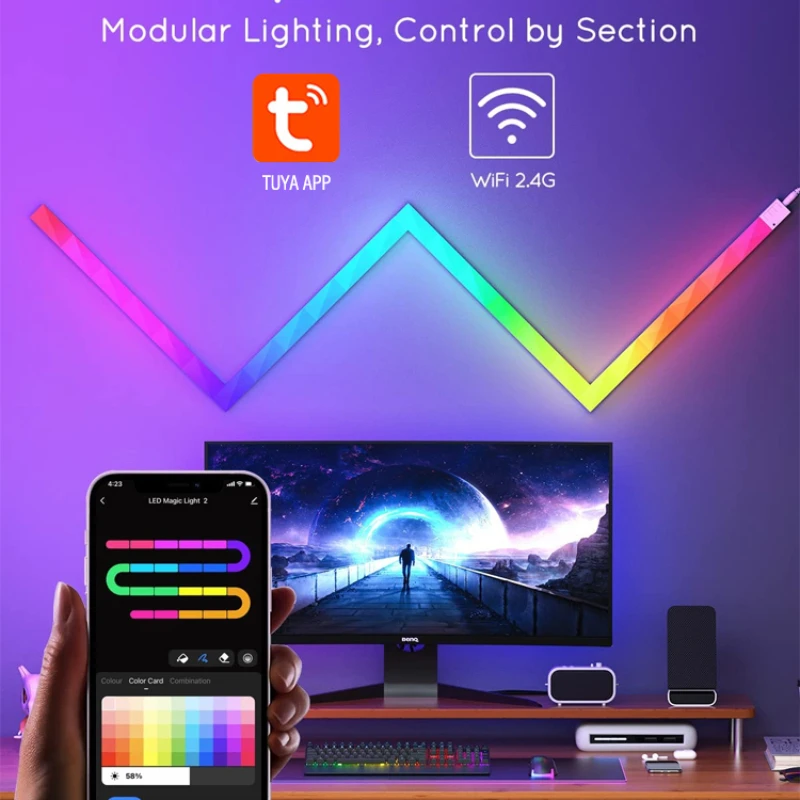 Rgbic Smart Wifi App Led Wall Life Ambient Night Zene Szinkronizálás Diy Ligh Bar Tv Hátások Hálószoba Játékterem Dekorációja