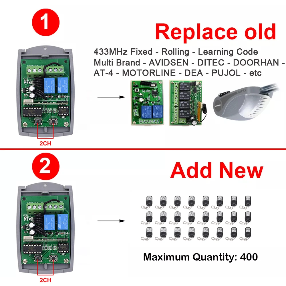 Scs Sentinel Control Gate Garage Ajtó Vevő 12V 24V 2Ch 433Mhz Távvezérlő Adó Kapu Nyitó Universal Vever 433