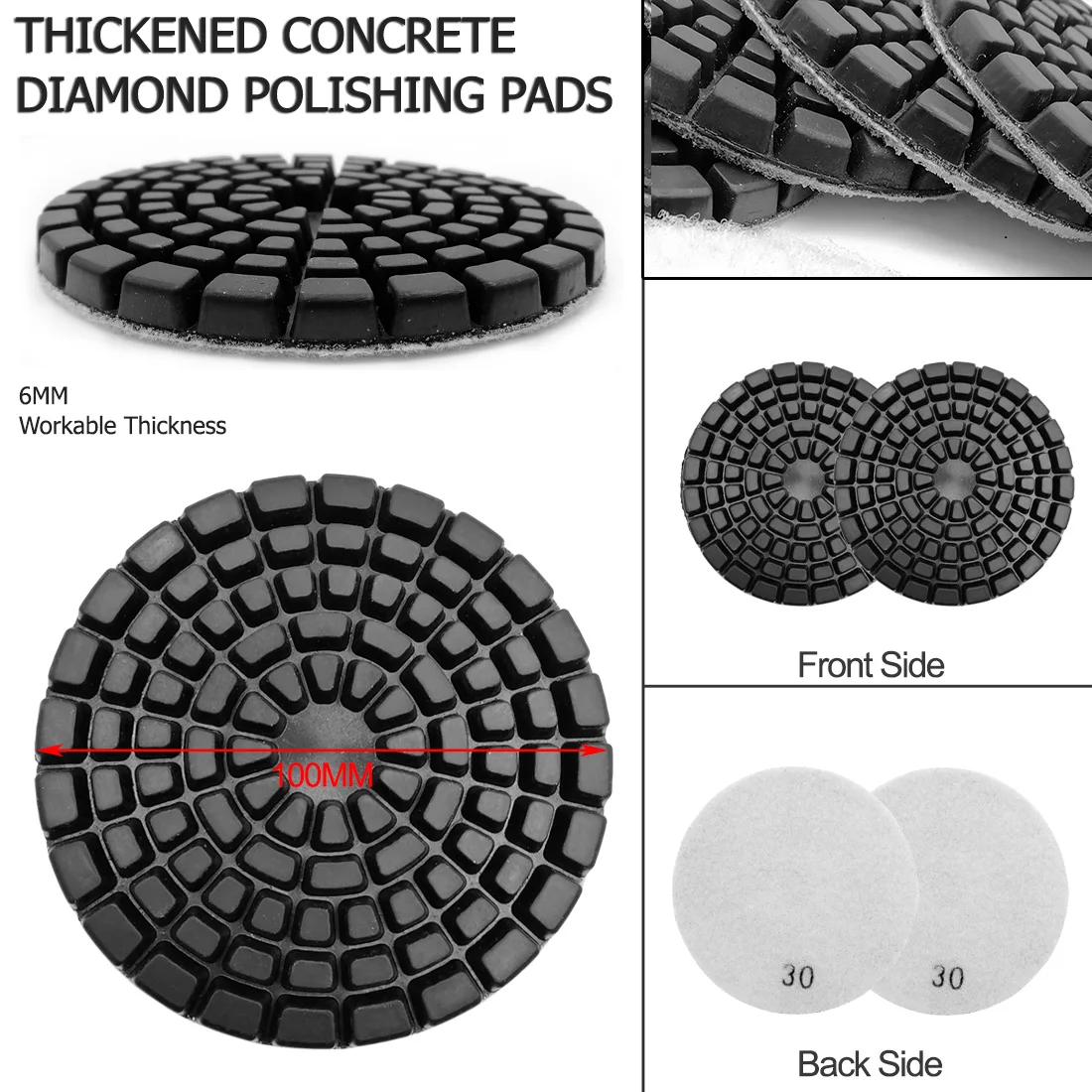 Shdiatool 9Db 100 Mm/4 Hüvelykes Megvastagodott Gyémánt Gyanta Kötés Beton Polírozó Párnák Grit #30 Padló Megújulási Tárcsák
