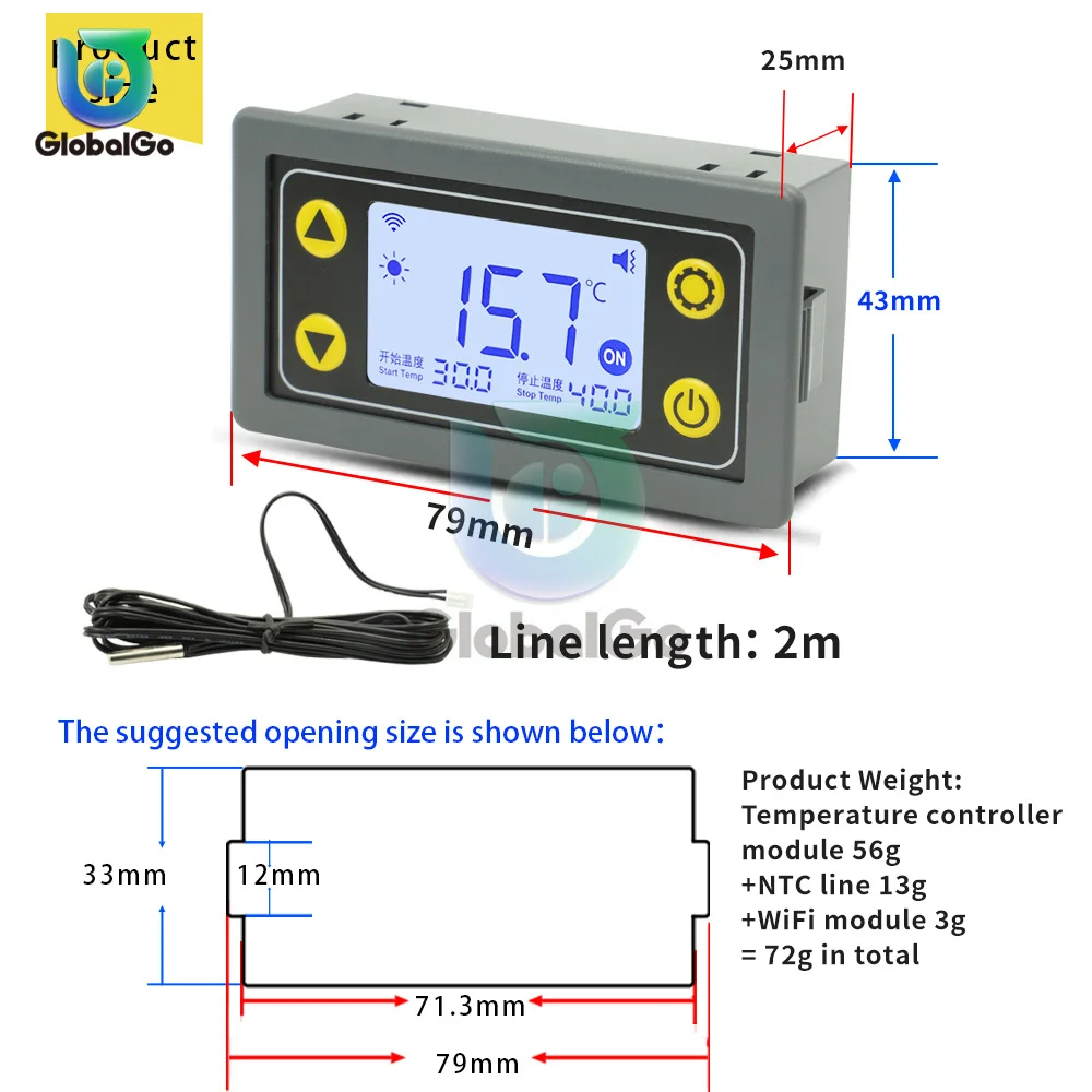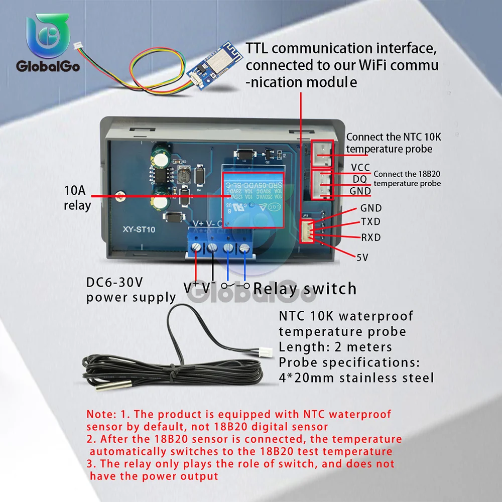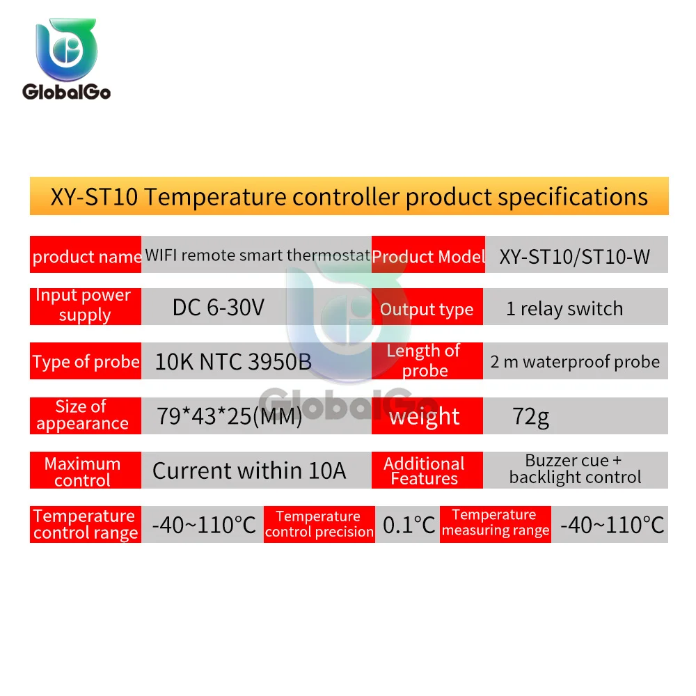 St10 Remote Wifi Termosztát Hőmérséklet-Vezérlő Modul Dc 6-30V 10A Szabályozó Fűtés Hűtés Vezérlés Érzékelővel