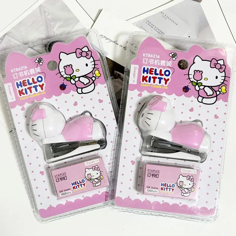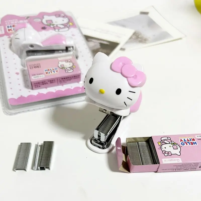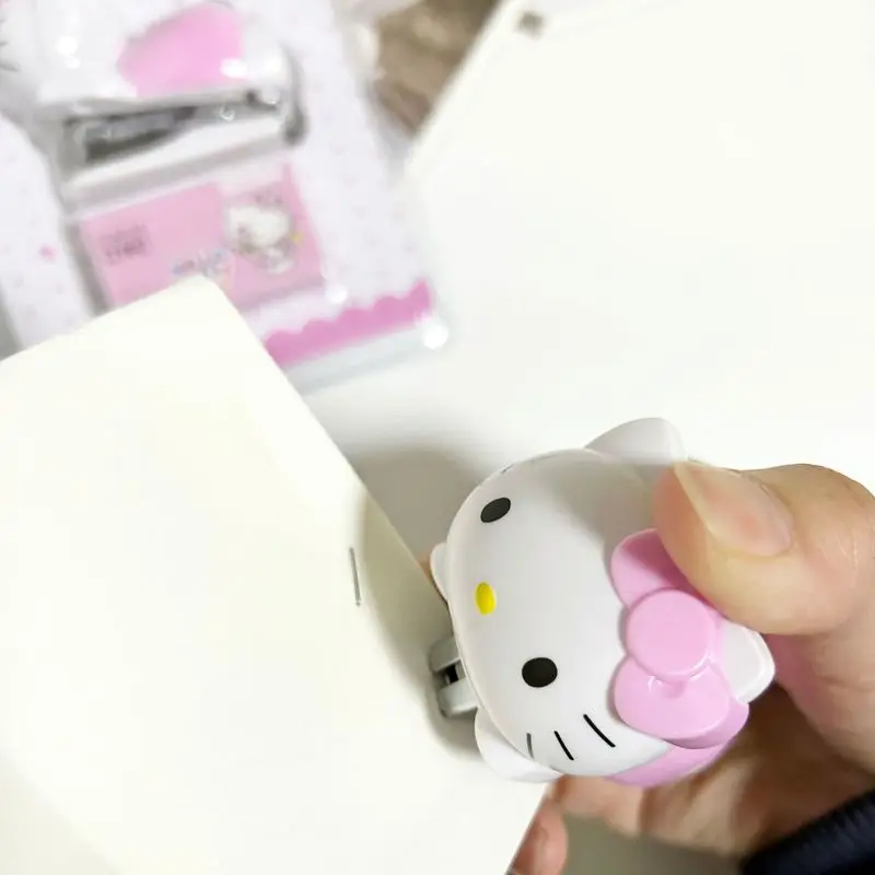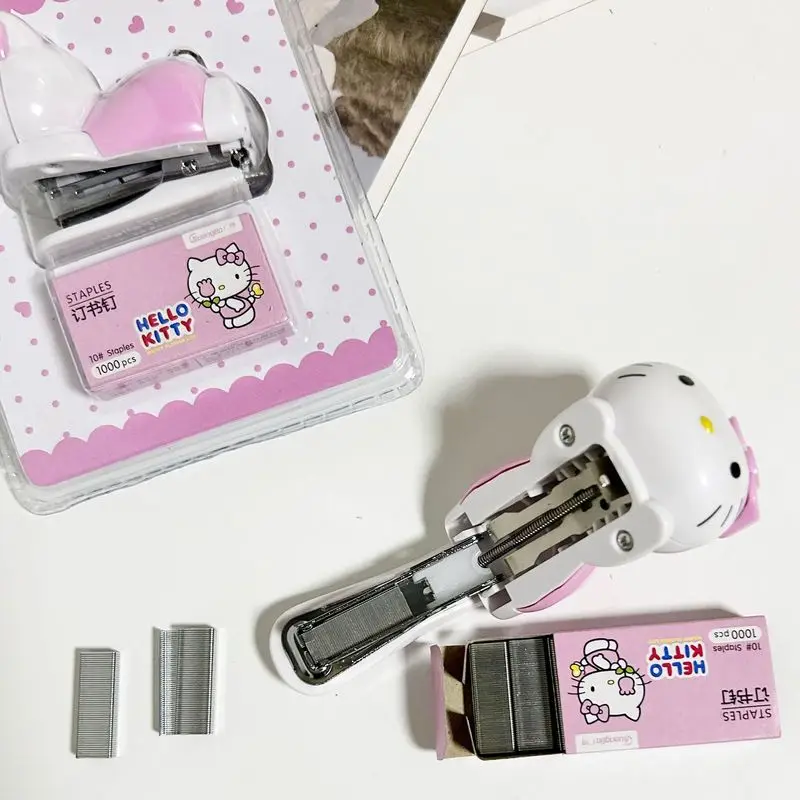 Stapler Pink Girls Cartoon Kt Cat Mini Diákok Tesztpapír -Kötőgéppel Szett Scool Kids Nice Ajándékok
