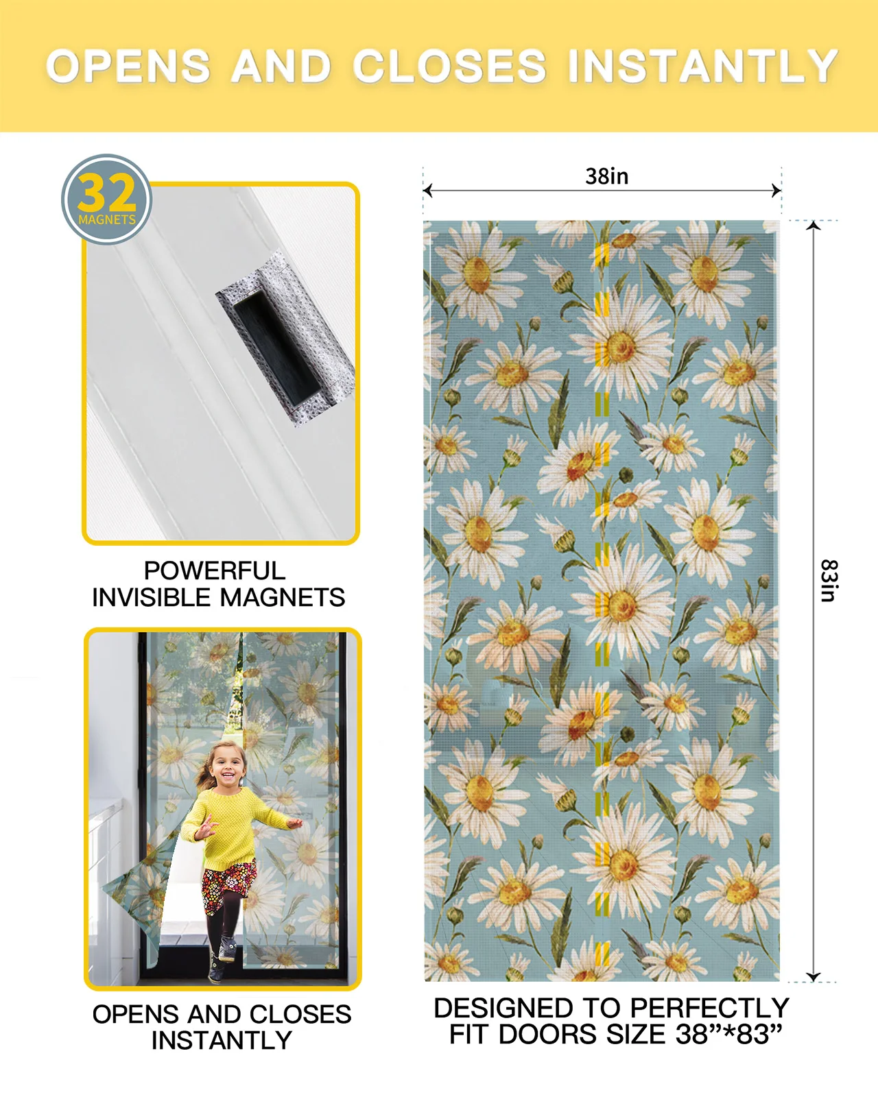 Százszorszép Akvarell Textúra Nyári Mágneses Képernyő Ajtó Függöny Szúnyog Anti Rovarok Légybogár Konyhai Függönyök