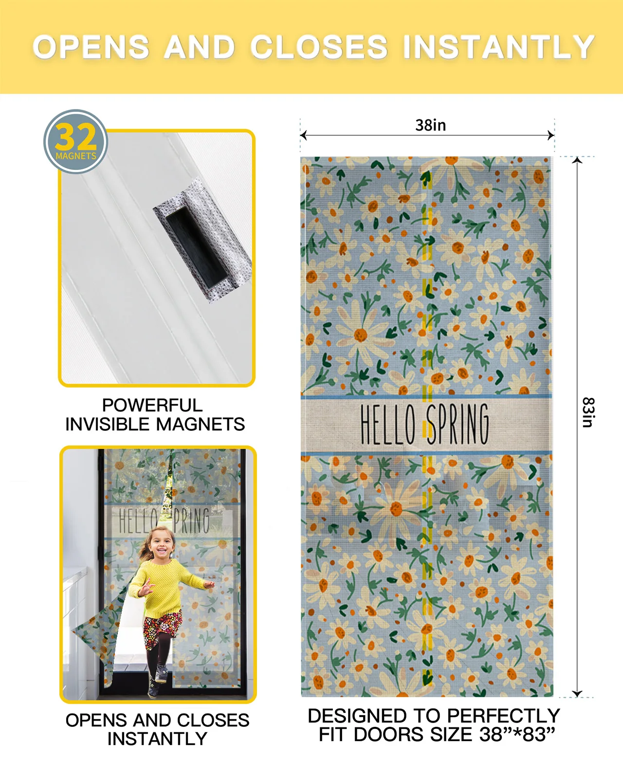 Tavaszi Virág Százszorszép Konyhai Függöny Mágneses Szúnyog Hálófüggönyök Nyári Hálószoba Rovarok Ajtó