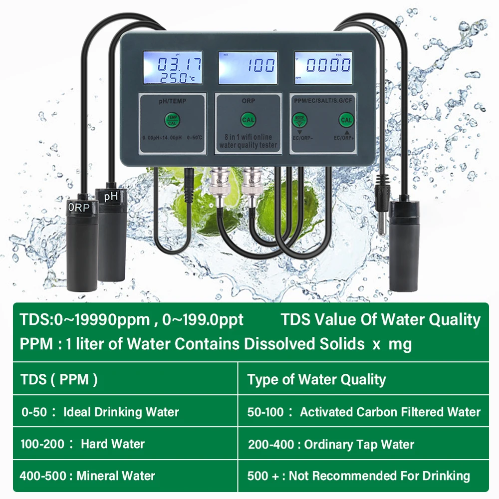 Tuya Wifi Fishtank Vízminőség -Tesztelő Nagy Pontosságú Otthoni Használat Vízminőségi Tesztelő Gép Vízmonitor Analizátor A Medencéhez