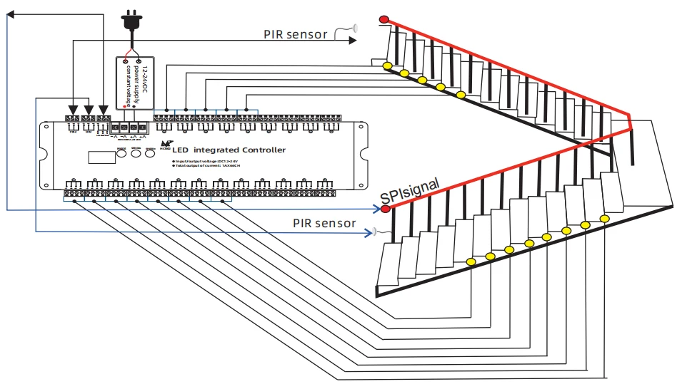 Új Led Létrán Lévő Fényvezérlő Pir Mozgásérzékelő Lépcső Lépés Rgb Strip Lámpák Ic 1903 Pixel Magic Controller