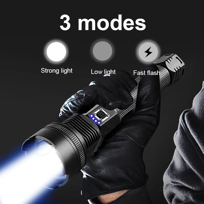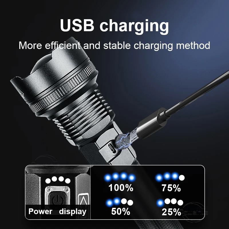 Ultra Bright Xhp70 Led Zseblámpa Usb -Töltéssel, Erőteljes, Újratölthető Fáklya Vízálló Lámpa Kültéri Reflektorfény -Kijelző