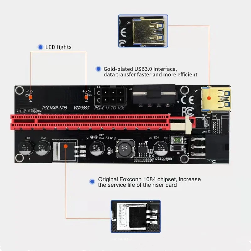 Ver009S Plusz Pci-E Riser Card 009S Pcie 1X-16X Extender 6Pin Power 30 Cm 60 100 Usb 3 Kábel A Grafikus Kártyához