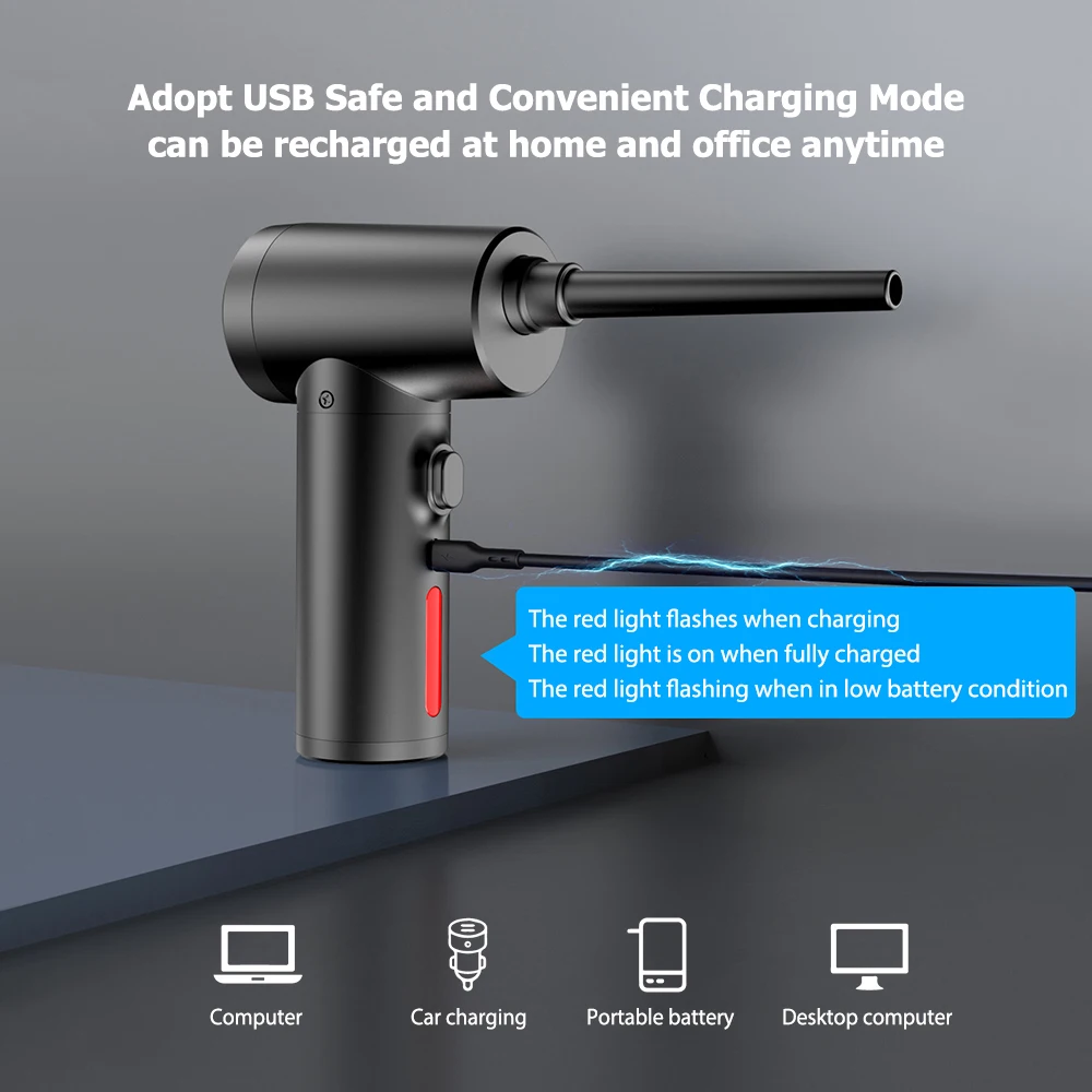 Vezeték Nélküli Elektromos Levegő Porszókör És Légszivattyú 2-In-1 Por Fújó Eszköz Led-Es Fényű, Nagy Teljesítményű 50000 Fordulat / Perc 100 W-Os Porfúvó Szivattyú