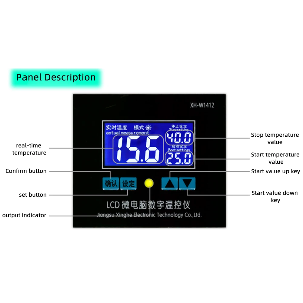 W1412 Digitális Vezérlés Hőmérséklete Mikrokomputer Termosztát Kapcsoló Hőmérő Dc 12/24 V Ac 110-220V Relé
