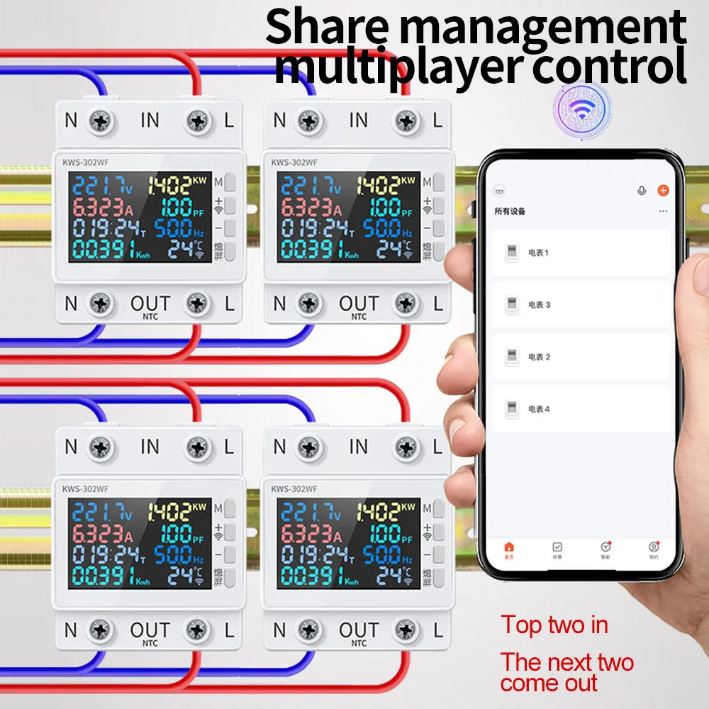 Wifi App Digital Energy Meter Teszter Vasúti Villamosenergia -Használati Monitor Ac 170V ~ 270V 63A Power Volt -Mérő Feszültség Erősítő Watt Kwh