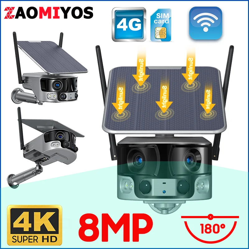 Zaomiyos 4G Sim -Kártya/Wifi 180 ° Ultra Széles Látószögű Napenergia -Kamera Kültéri 8Mp Kettős Lencse 4X Zoom Emberi Detektálási Biztonsági Kamera