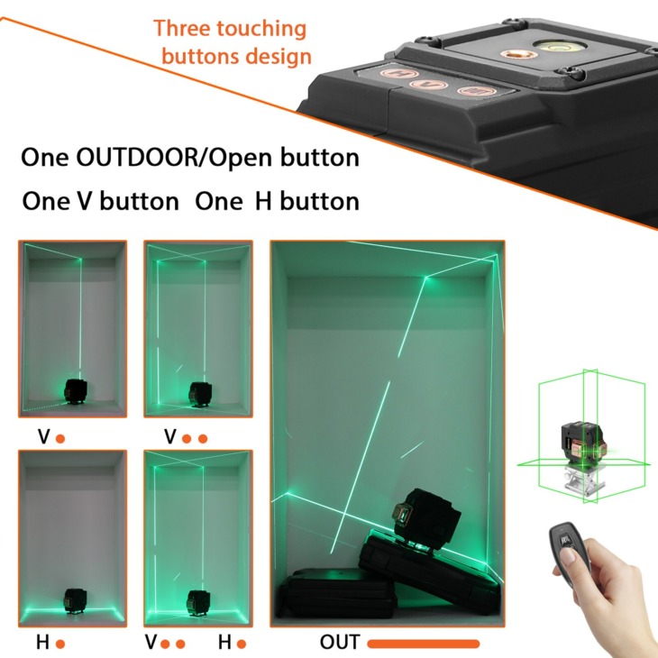 Zöld Laser Level 3D 12 Lines Önszintező Laser Level 360 Függőleges Vízszintes Kereszt Erőteljes Zöld Lézer Sugár Vonal Lazer Level