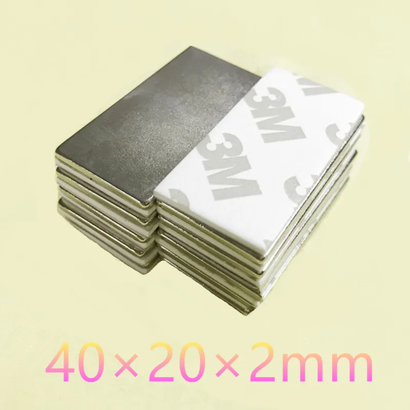 5/10Db Blokk Mágnesek 40 × 20 2Mm -Es Erőteljes Neodímium Mágnes Ragasztóval N35 Erős Állandó Mágneses Ragasztó Szalag Kuboid