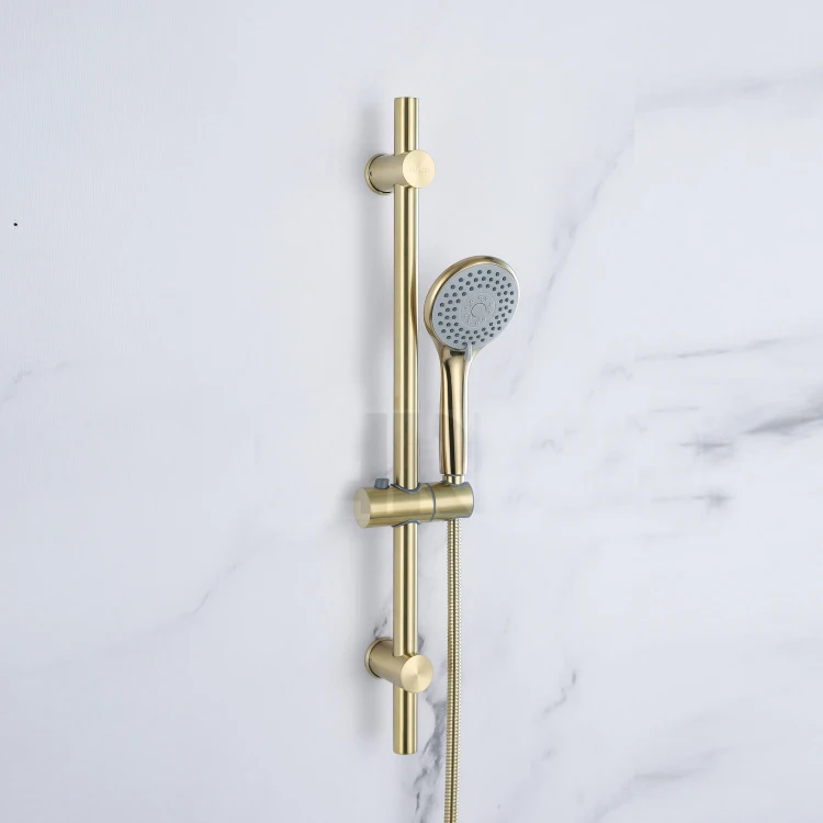 Csiszolt Aranyozott Három Funkció Kézi Zuhany Csúszó Rúd Kézzel Fej Szálcsiszolt Aranytartóval És Zuhanyzó Tömlővel
