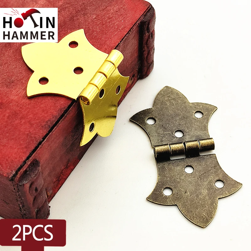2Db Antik Bronz/Arany Fa Doboz Csuklópántság Diy Bútorok Hardver 6 Lyuk Vas Csuklószekrény Fiókja Pillangó Csuklópánt Csavarral