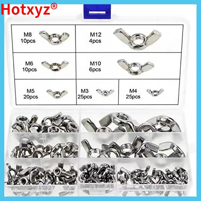 304 Rozsdamentes Acél Pillangó Csavar Kézi Csavaró Anya Öltöny M3 M4 M5 M6 M8 M10 M12 Rögzítse A Öltönyt 100 Gabona