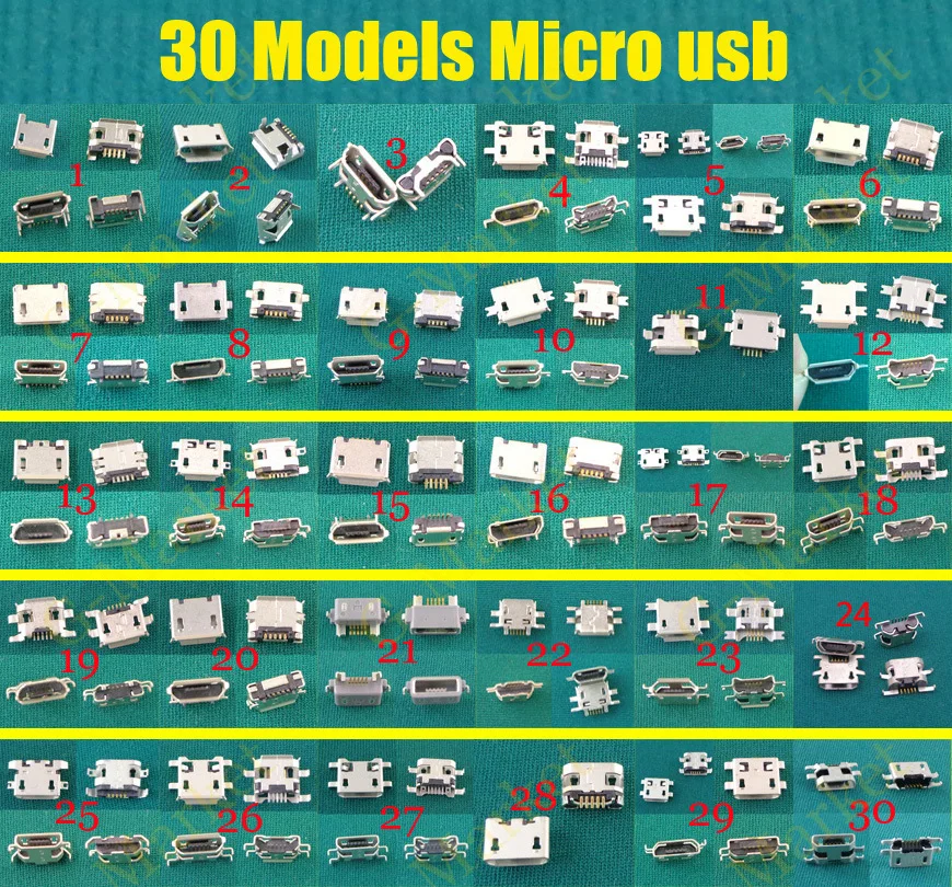 30Modell 30Db 5Pin 7Pin Mini Micro Usb Jack, Töltőaljzat, Csatlakozó V8 Port A Samsung Huawei Lenovo Telefontablettához