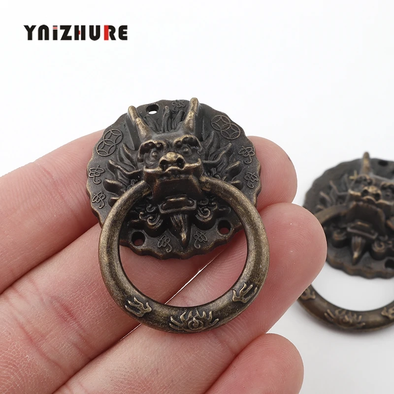 32*47 Mm 20Db Kínai Vintage Sárkány Fej Bútor Ajtó Húzó Fogantyú Ötvözet Szekrény Fiókok Kis Gyűrűfogantyú