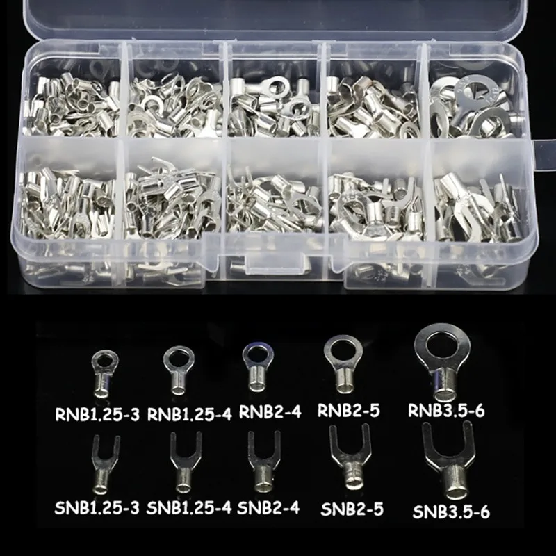 320Pcs/10. Doboz 1-Ben Nem Szigetelt Gyűrűvilla U-Típusú Sárgaréz Terminálok Választékkészlet Kábelhuzal-Csatlakozó Krimp