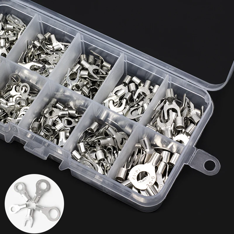 320Pcs Terminálok Nem Szigetelt Gyűrűs Villa U-Típusú Sárgaréz Terminálok Választékos Készlet Kábelhuzal Csatlakozó Krimp Ásó