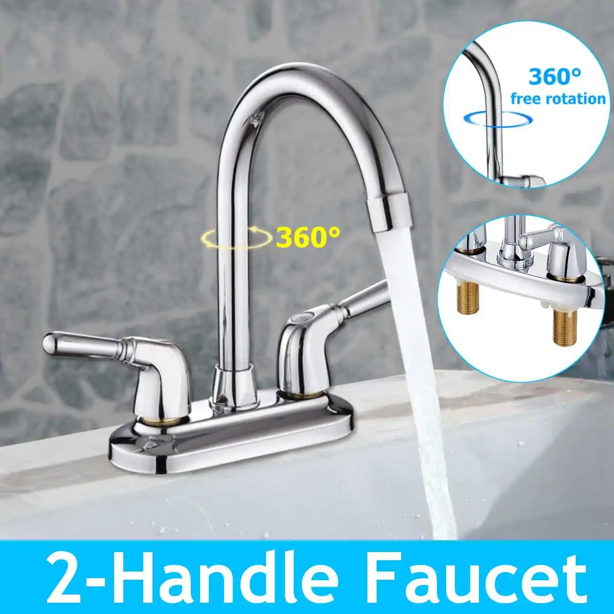360 Fokos Forgatható Víz Csaptelep Fürdőszoba Medence Csaptelep Fedélzetre Szerelt Mosogatócsap Konyhai Négyzet És Hidegvízkeverő Csap