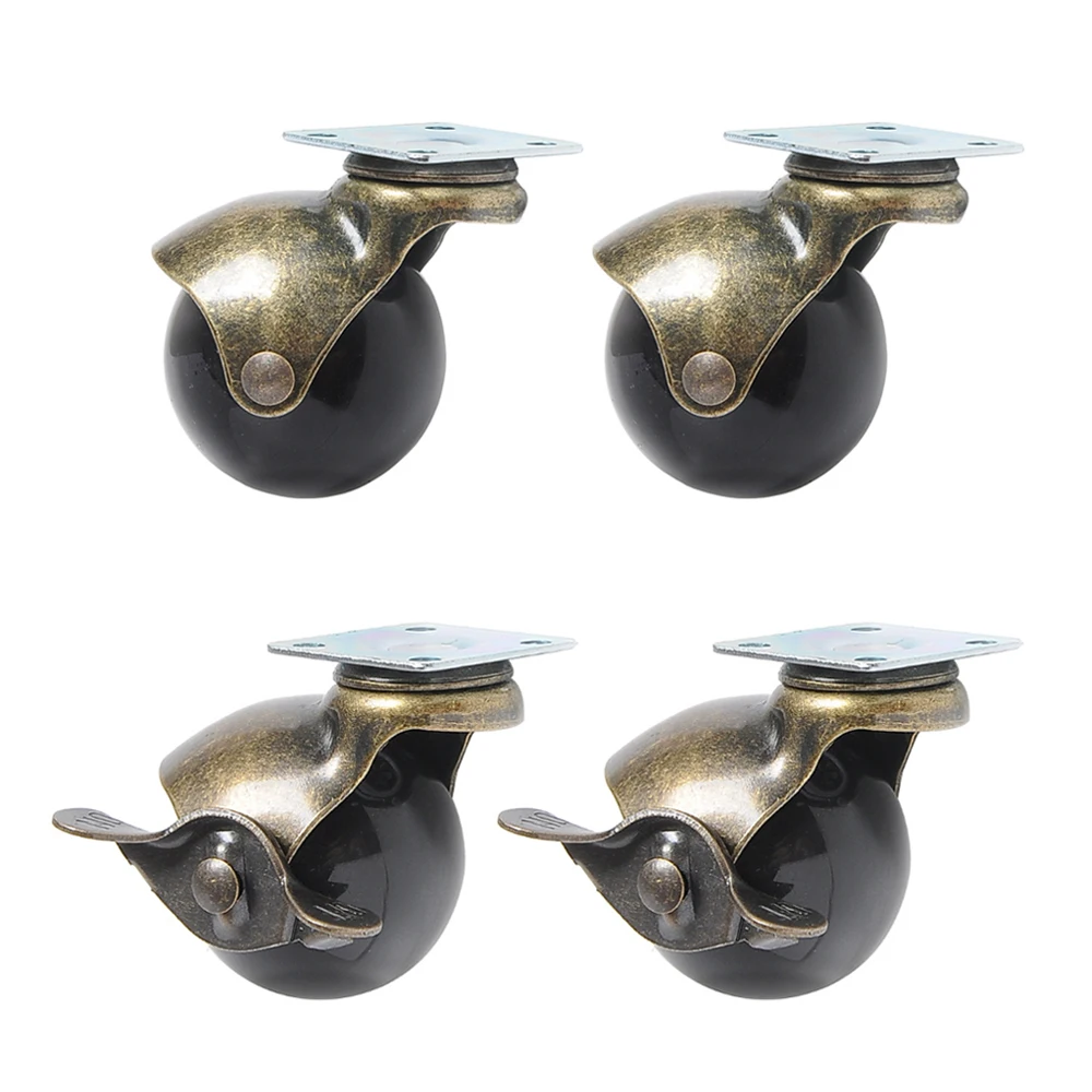 360 Fokos Forgógázkerekek, Golyós Görgő Kerekek Felső Lemez Nélkül Nincsenek Zaj Kerekek Bútorszekrényekhez (1,5 Hüvelyk Fékkel)