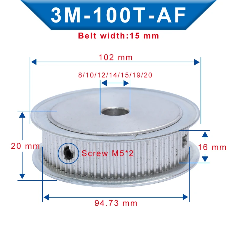 3M-100T Tárcsás Af Alak 8/10/12/11/11/20 Mm-Es Alumínium Anyag Szíjtárcsa-Nyílás Szélessége 16 Mm-Re 3 Méteres Vezérműszíj Szélességére 15