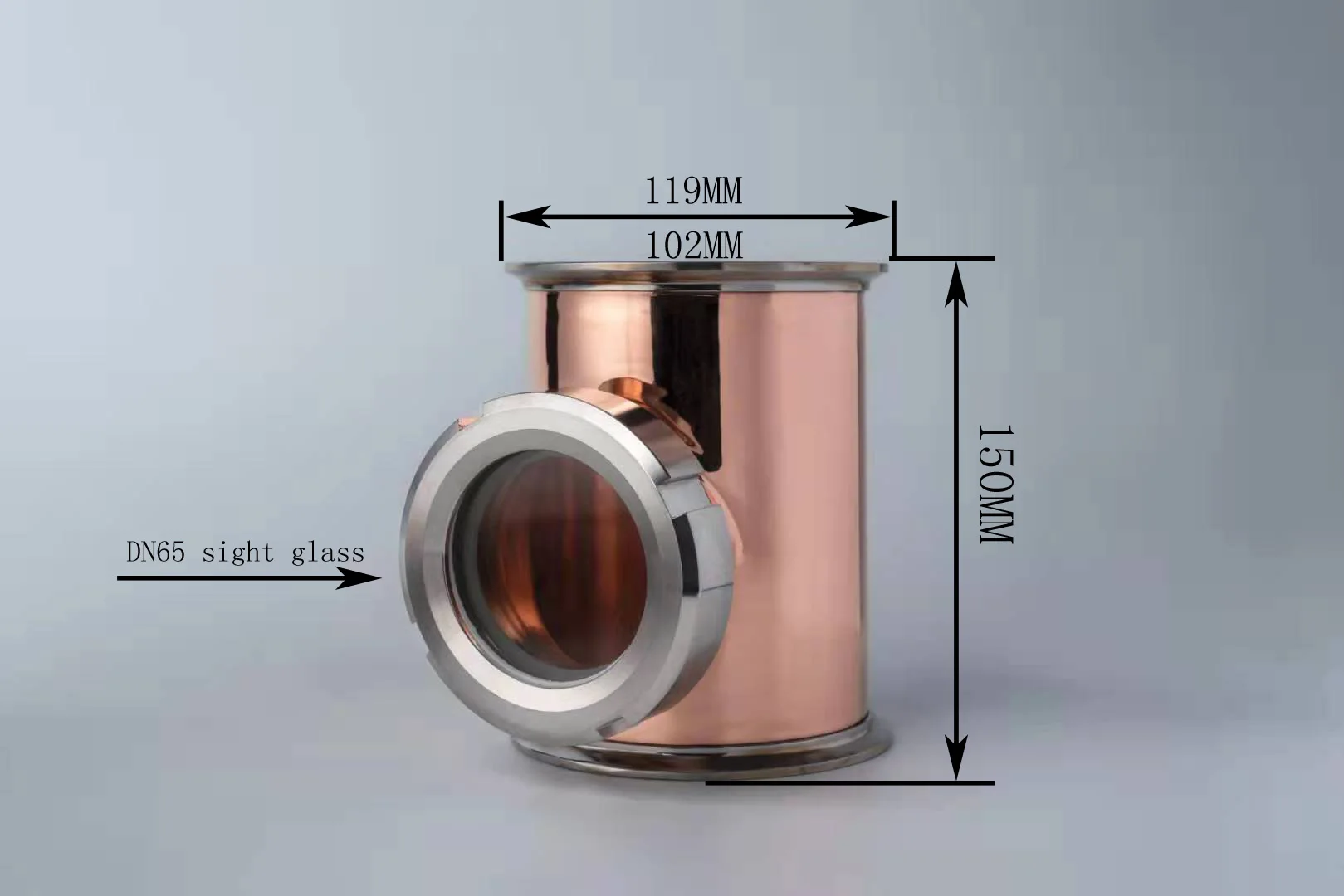 4 “Réz Látóüveg-Unió Tri-Clamp Tee 4” X4 “X3” Rézbuborék-Készlet Desztillációs Lencse Oszlop Otthoni Sörfőzéshez