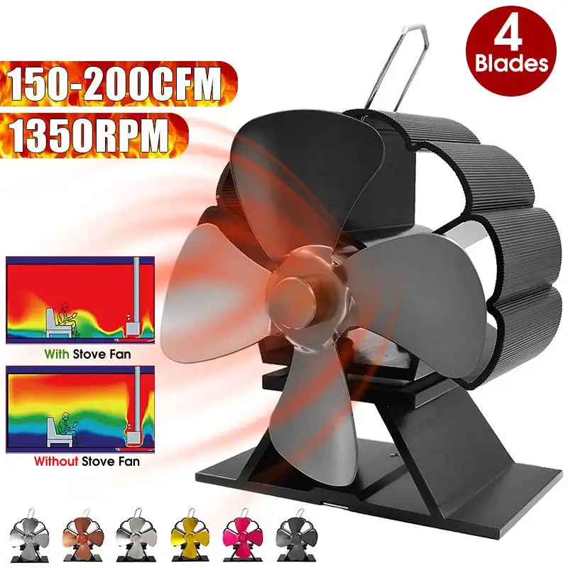 4 Blades Heat Motoros Tűzhely Fan For Wood Kandalló Log Író Csendes Környezetbarát
