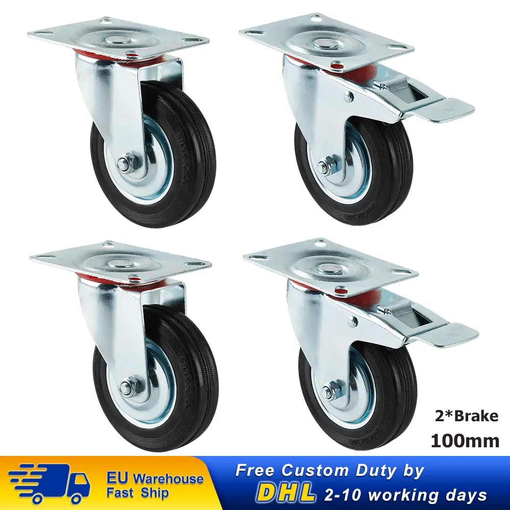 4 Db 100 Mm -Es Nagyteljesítményű 200 Kg -Os Forgó Ricinus Kerekek 2 Fék Pu Kocsi Bútorszék -Görgővel
