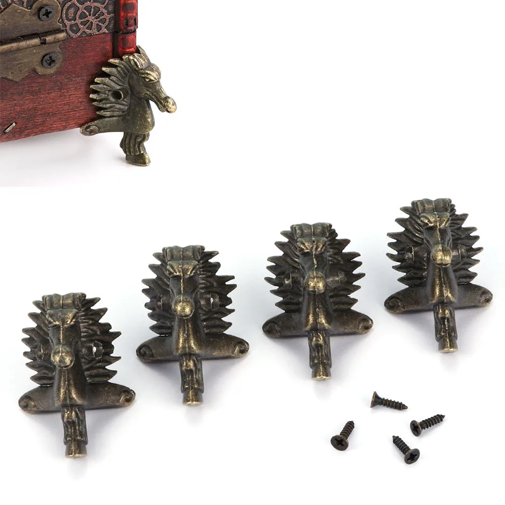 4 Db Antik Ló Fej Alakú Doboz Sarokvédő Retro Bronz Fa Tok Ékszer Tároló Láb Sarok Konzol