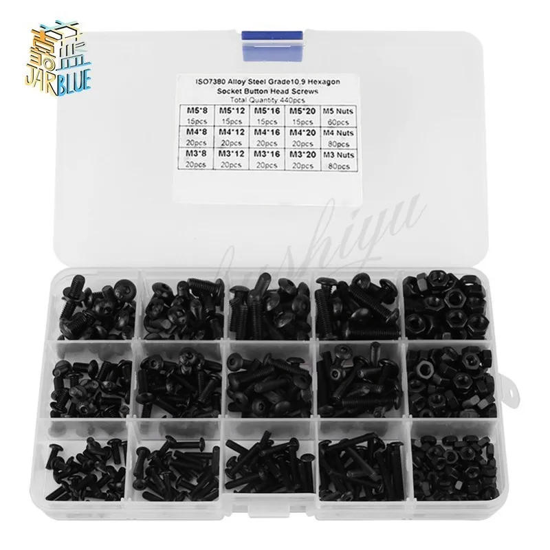 440 Pbs Allen Key Head Hex Aljzat Csavarkészlet M3 M4 M5 Rozsdamentes Acél Lapos Countersunk Fejcsavar És Anyák Csavarok Választékkészlet