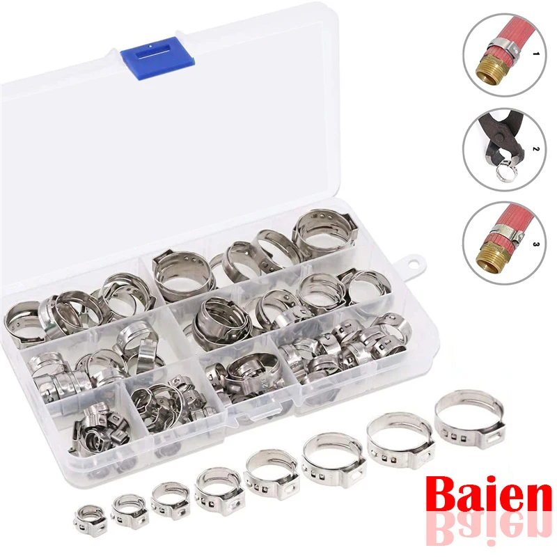 45/80/130/140Pcs Egyfüles Lépés Nélküli Tömlőbilincsek 5,8-23,5 Mm 304 Rozsdamentes Acél Tömlőbilincs
