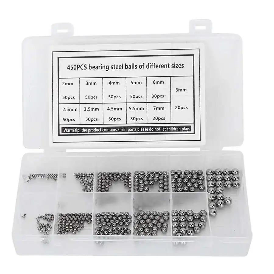 450Pcs Csapágy Acélgolyók Osztályozási Készlet 2/2,5/3/3,5/4/4,5/5/5,5/6/7/8 Mm Csapágygömb A Görgők Szállítószalagokhoz Kerékpárok