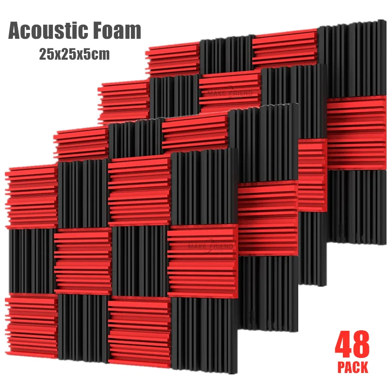 48 Csomag 250X250X50 Mm Stúdió Akusztikus Hab Hang Felszívódó Ktv Zaj Abszorpciós Ék Hangbiztos Fali Panelek Fekete Piros