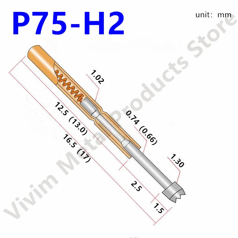 100Db/Tétel P75-H2 Tavaszi Érintkezési Szondák 1,02 Mm Hosszúságú 16 Kúpos Fejrugó Teszt Szonda Csap Pcb Teszteléshez