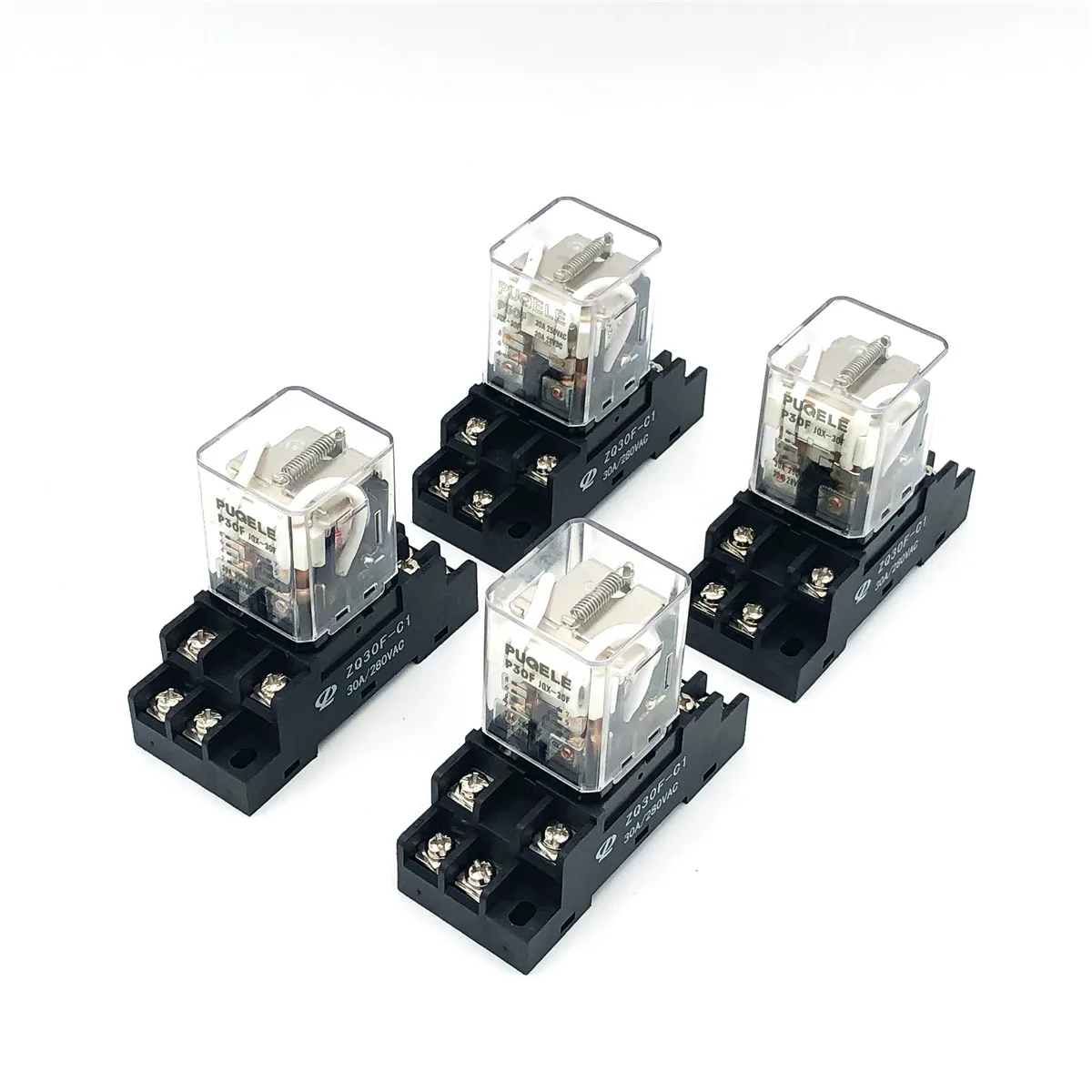 4Sets Jqx-30F-2Z 30A Nagy Teljesítményű Relé 12Vdc 24Vdc 110Vac 220Vac Elektromágneses Relék Jqx-30F 2Z P30F 8Pin Dpdt W Socket Base