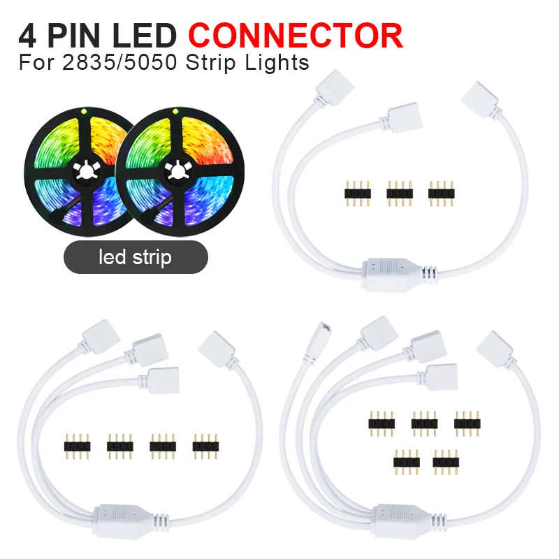 4Pin Rgb Led -Es Csík Világító Csatlakozó Hosszabbító Kábelkábel Anya Osztó Az Rgb5050 2835 Fény Vezetékhez