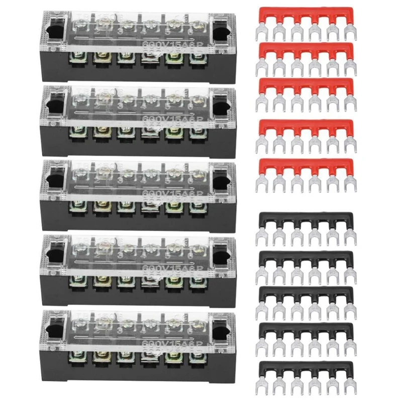5 Dcs Csavaros Csatlakozó Blokk, Kettős Sor, 6 Pozíció, 600 V, 15 Terminál + Előzetesen Beállított Csatlakozógátló Csík