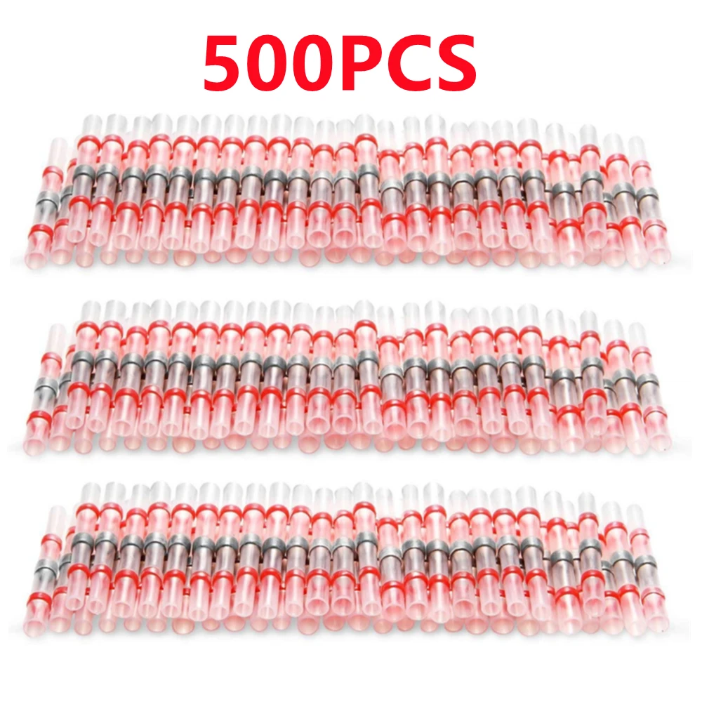 500/1000 Db Vörös Hő Zsugorodás Krimpelő Kapcsok Vízálló Teljesen Szigetelt Tömítés Butt Elektromos Vezeték Csatlakozók 22-16 Awg Kit